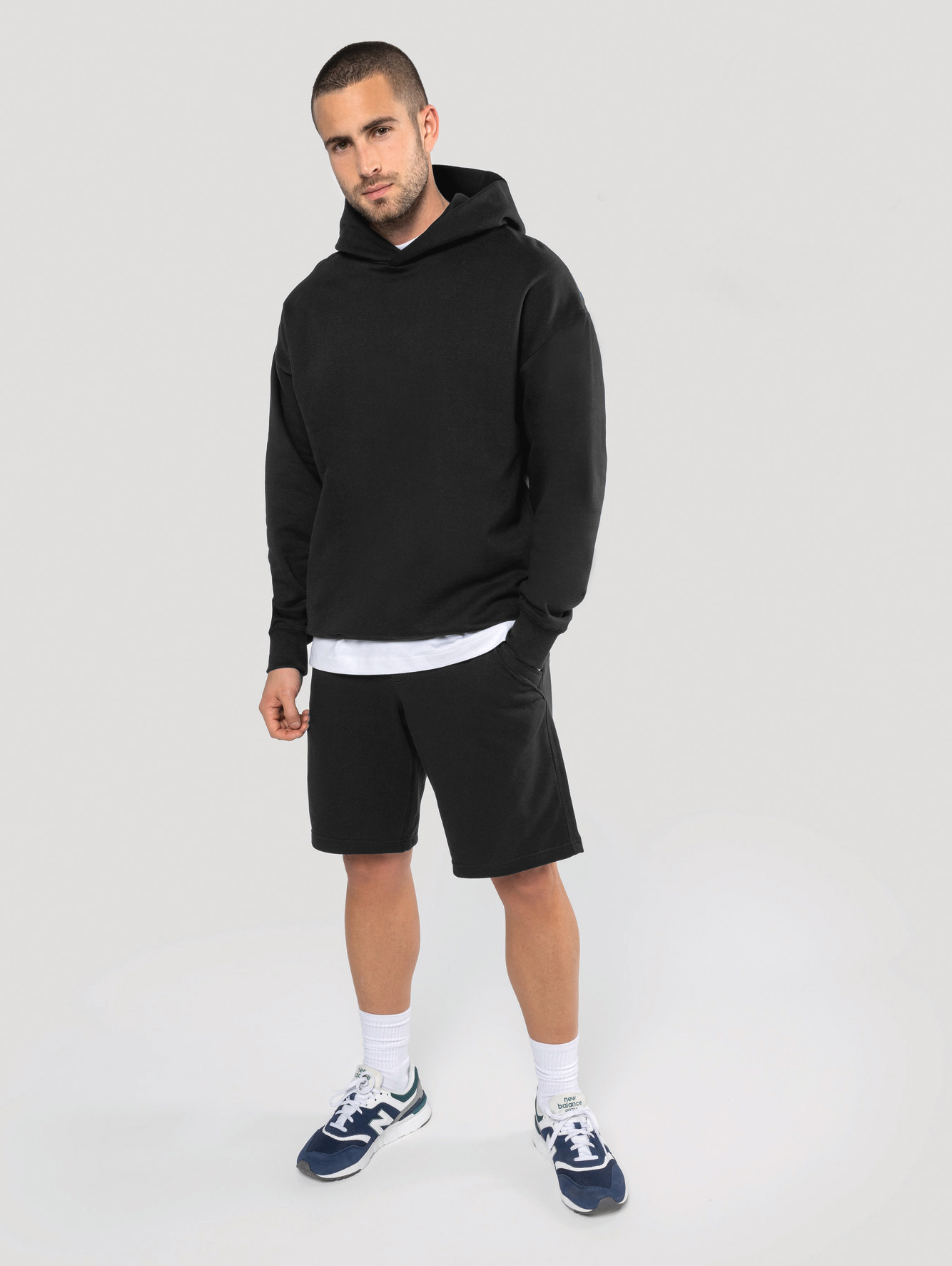 Pantaloni tip bermude de înaltă calitate, confecționați dintr-un amestec de bumbac pieptănat și poliester, cu gramaj mare, groși și durabili. Căptușeala interioară din French Terry asigură un confort sporit, în timp ce talia reiată cu șnur oferă o potrivire perfectă.